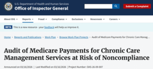 HHS-OIG Audit of Medicare Payments for Chronic Care Management Services at Risk of Noncompliance,