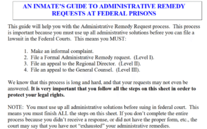 The Administrative Remedy Process. If you’re not familiar or are too ill to complete the steps on your own, your health may depend on fellow inmates intervening on your behalf.